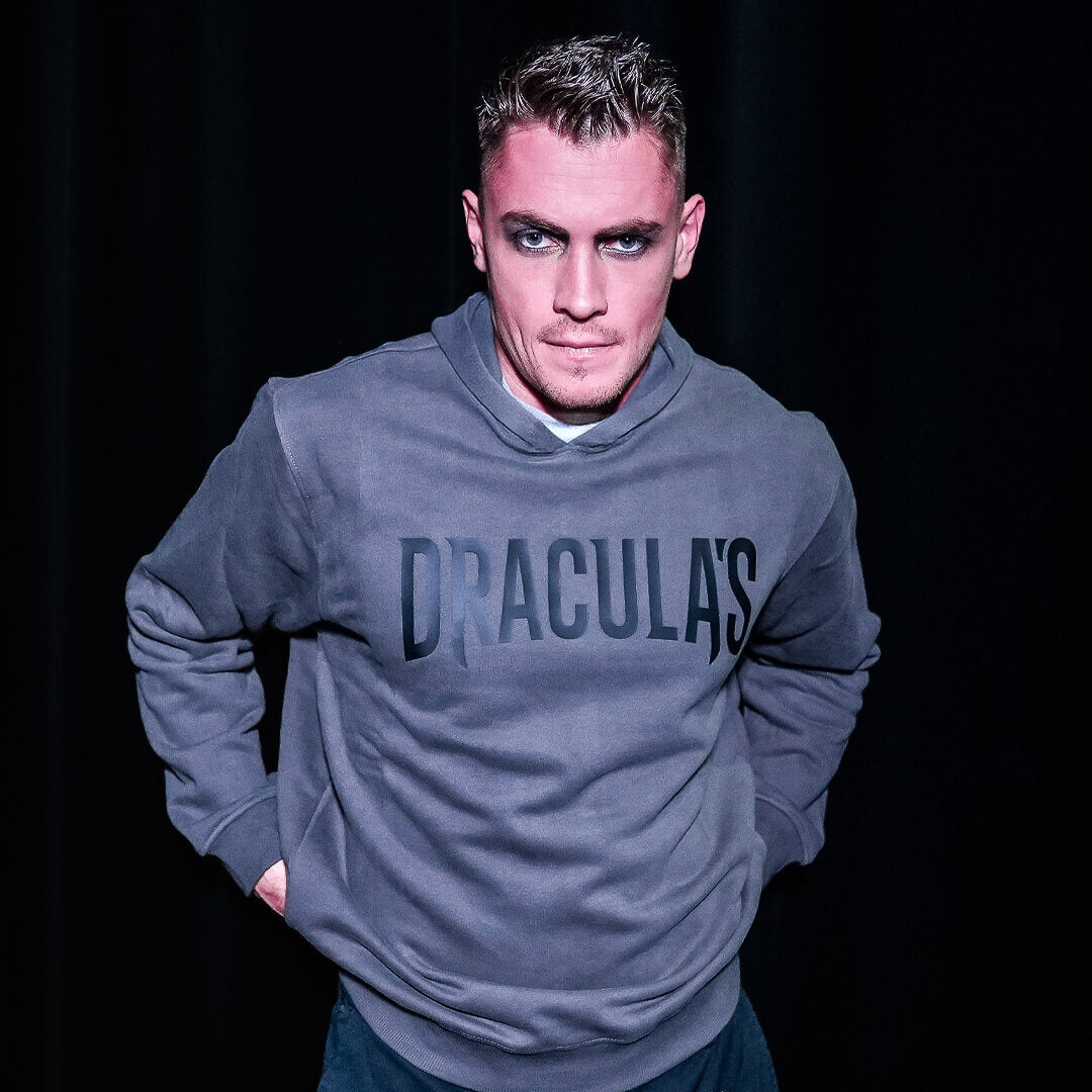 Try on Dracula's branded unisex hoodie. Featuring a printed black Dracula's logo across the chest. The comfiest damn hoodie going around.