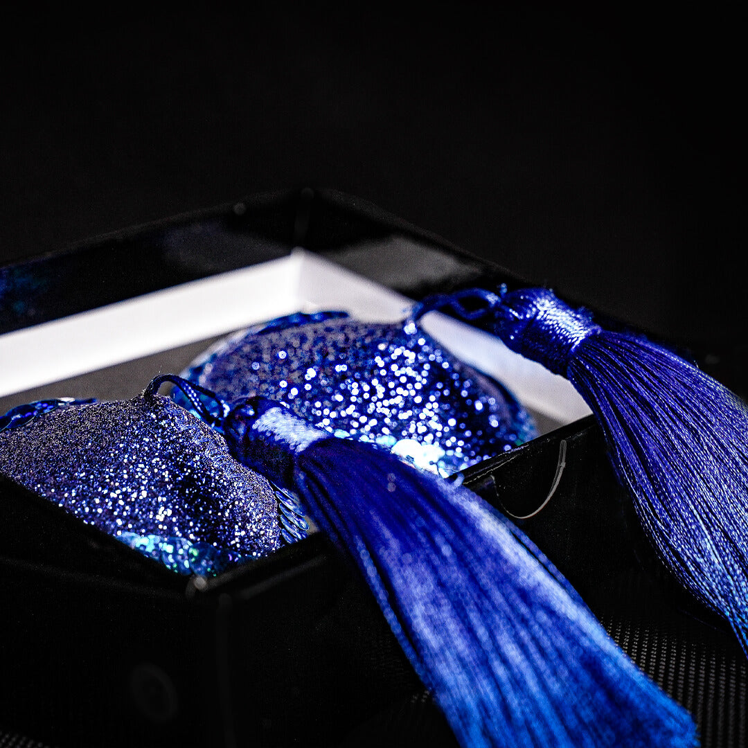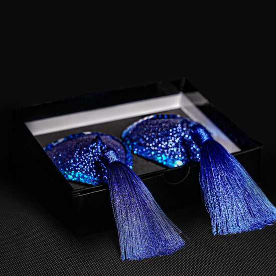 Turn heads. Tease hearts. These bold blue tassel pasties come boxed and ready to go. Perfect for when clothes are just a suggestion (titty tape sold separately).