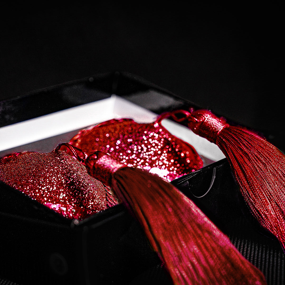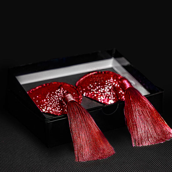 Turn heads. Tease hearts. These bold red tassel pasties come boxed and ready to go. Perfect for when clothes are just a suggestion (titty tape sold separately).